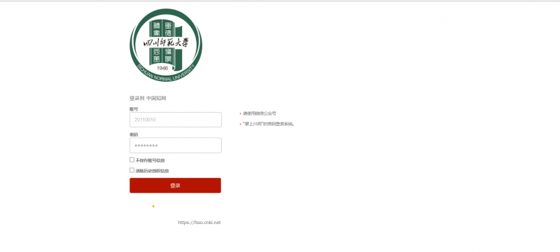 1.输入网址:http://fsso.cnki.net ,在页面上的检索框输入“四川师范大学”或者拼音首字母“scsfdx”,点击“前往”。