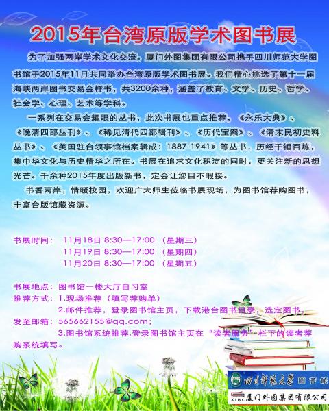 书展地点:狮子山校区图书馆一楼大厅自习室